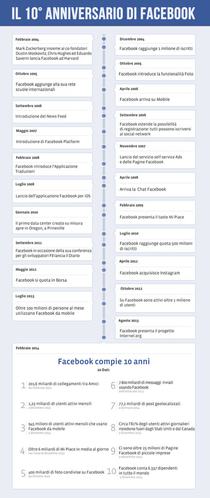 Facebook compie dieci anni