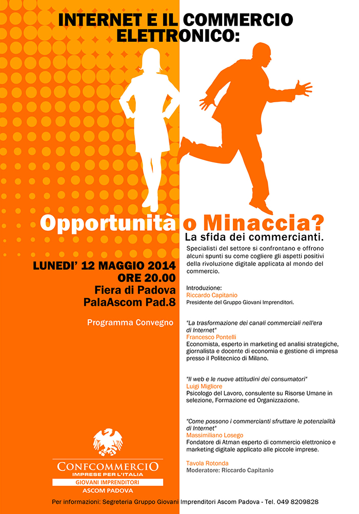 Lunedì 12 maggio 2014 alle ore 20.00 si terrà presso Fiera di Padova un interessante evento che stimolerà la discussione riguardo al ruolo di internet per i commercianti: si tratta di una grande opportunità oppure di una minaccia? Specialisti del settore si confronteranno ed offriranno spunti per trarre dal Web il maggior numero possibile di […]